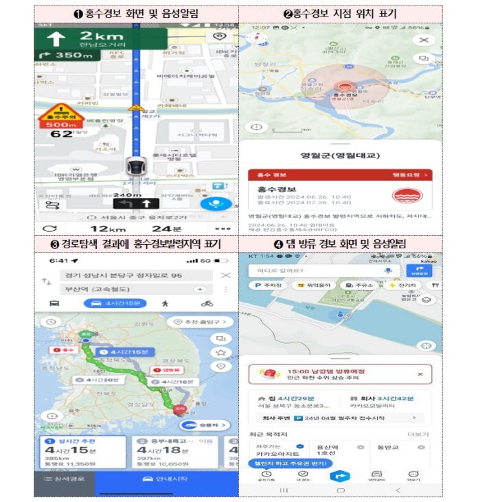 이에 정부는 지난해 7월부터 기업들과 함께 내비게이션을 통해 홍수경보 등 위험 상황을 운전자에게 실시간으로 알릴 수 있는 방안을 논의해 왔다.