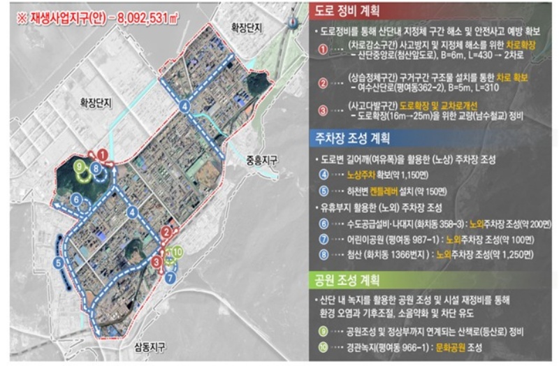 대불국가산단은 준공한 지 27년이 지나 도로, 공원 등이 낙후되고 주차공간 등이 부족해짐에 따라 도로·보도를 확장하고 노상주차장을 확충하는 한편, 공원·녹지도 재조성해 산단 내 근로환경을 개선할 계획이다.